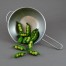 Feuilles de blettes réalisées en feutrine et rebrodées. Longueur totale environ 13,5 cm.