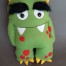Monstre gentil qui est à la fois un doudou et un coussin douillet.Réalisé en divers tissus de coton. Rembourrage en ouate hypoallergénique et antiacariens. Dimensions: environ 34 cm pour le corps et 53cm avec les jambes